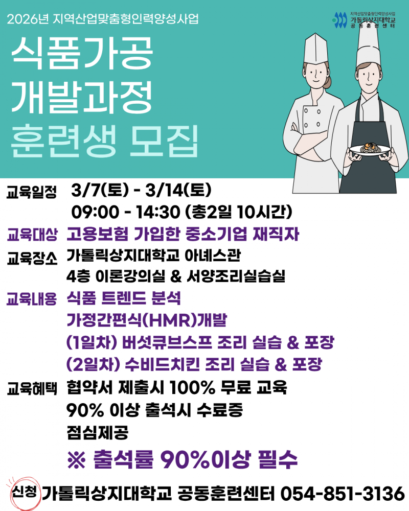 가톨릭상지대학교 아녜스관 4층 이론강의실 & 서양조리실습실